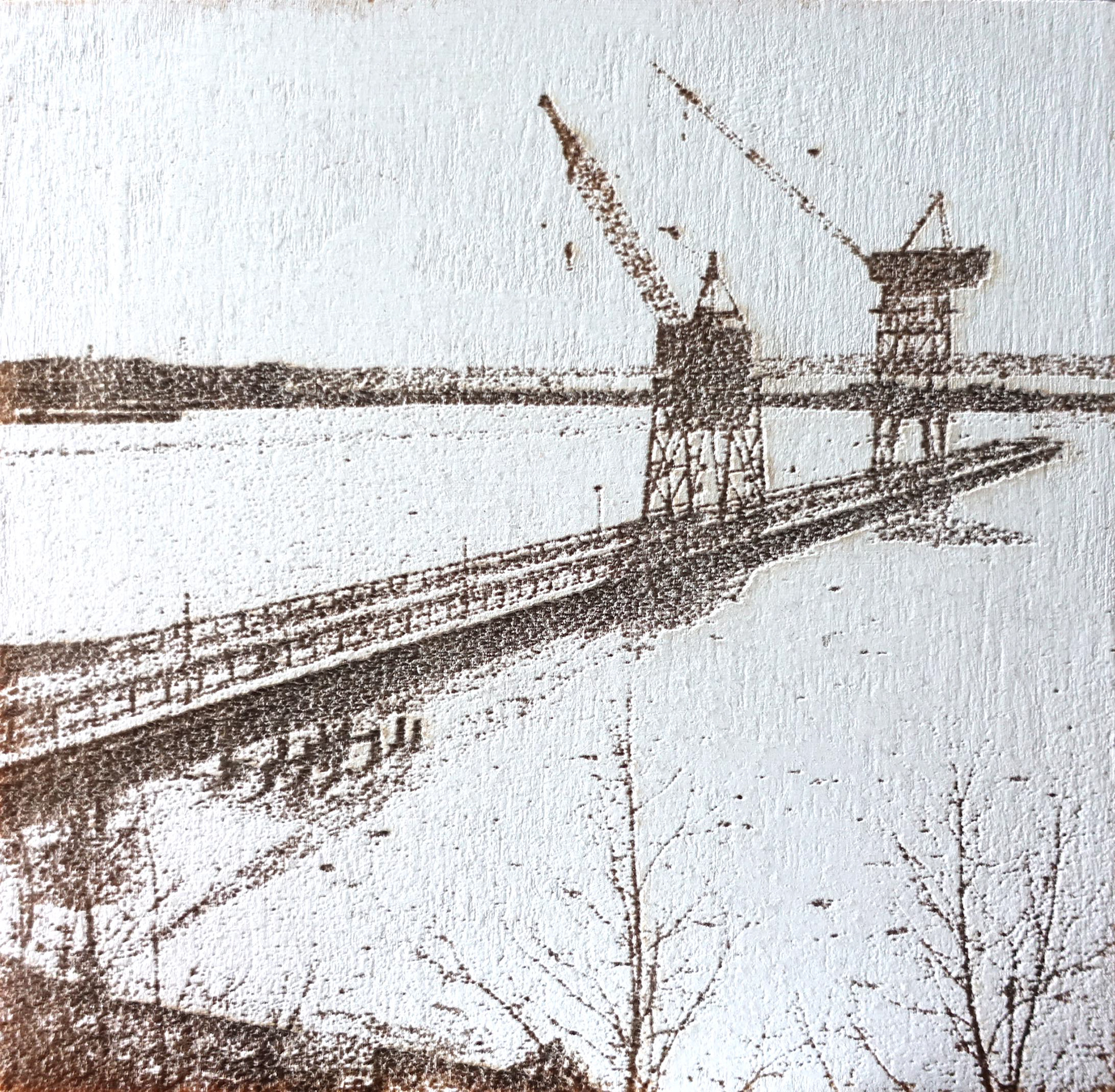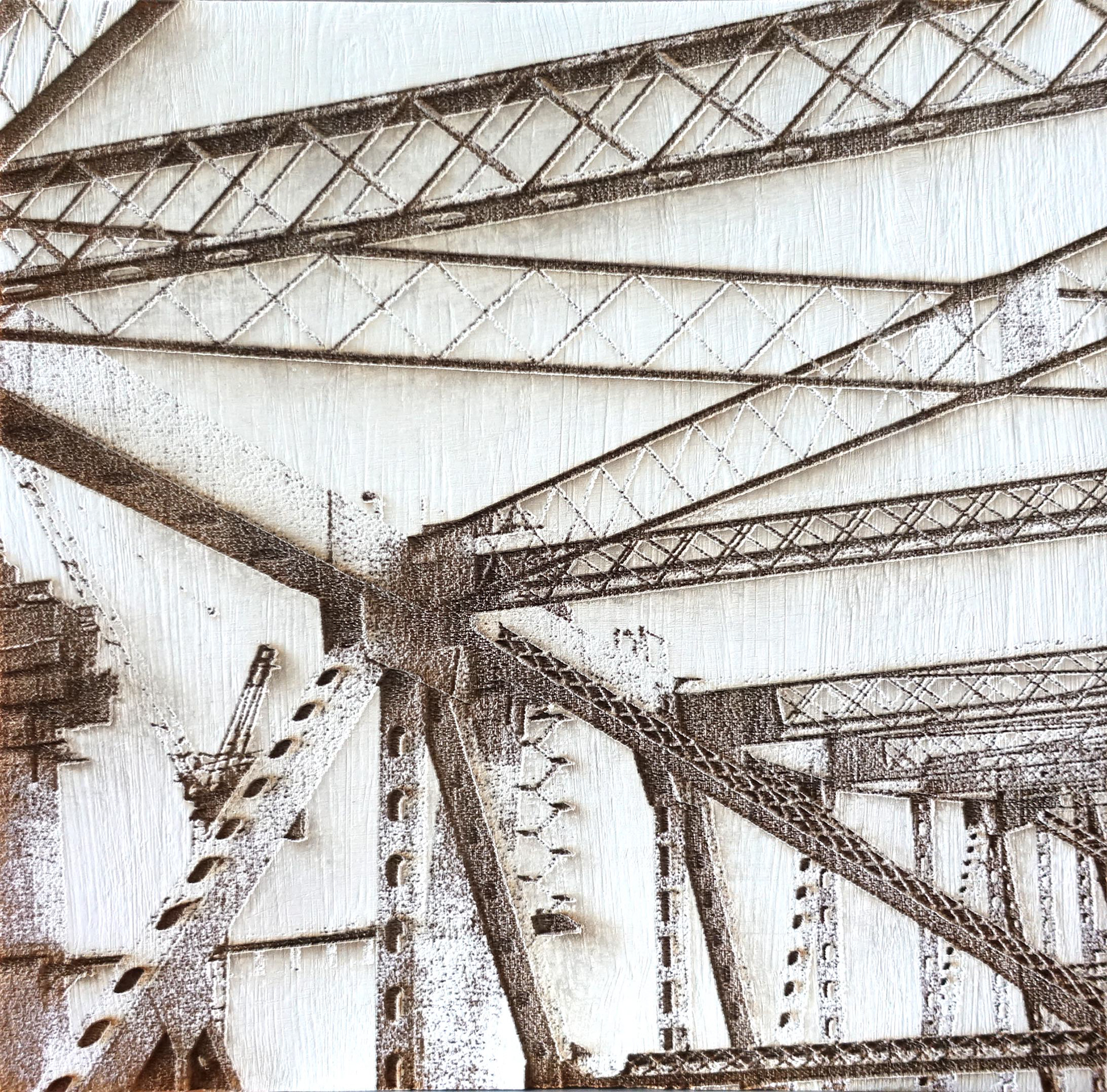 Bridge construction, laser cut on painted wood, 6"x6", 2016
